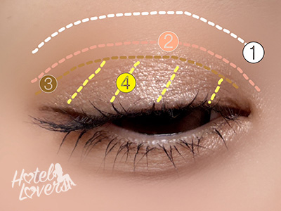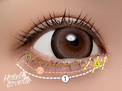 ❸をキワにひく、目頭に❹をのせれば完成です。