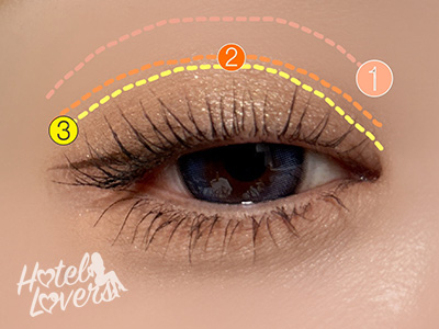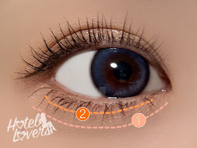 下まぶた全体に❶をのせ、