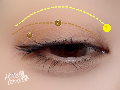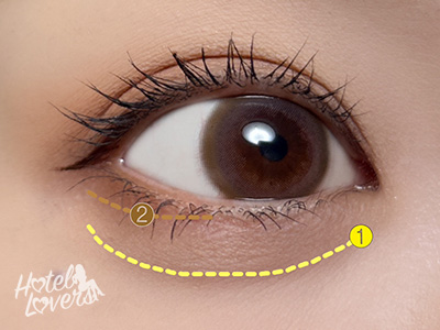 境目を馴染ませ、再度❷を目尻にのせて濃さをだします。