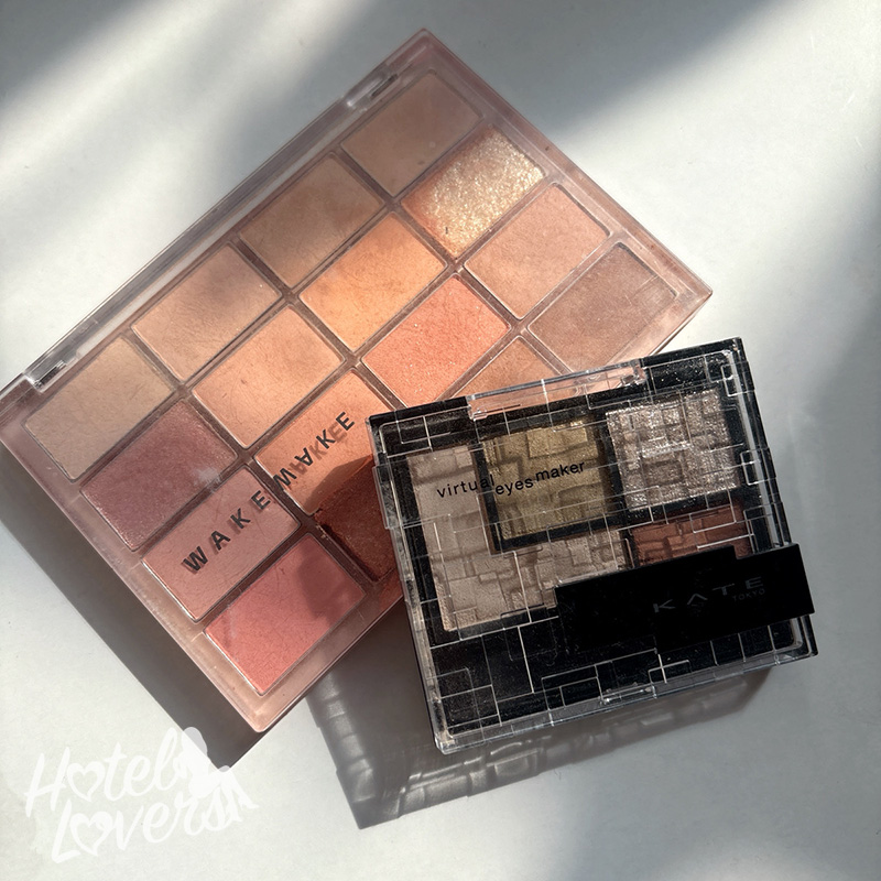 メイクはオレンジにカーキを重ねて
