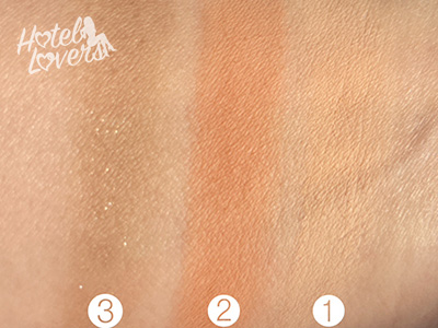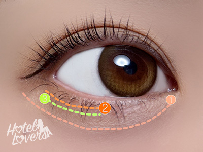 下まぶた全体に❶をのせて、目尻に❷❸を順に