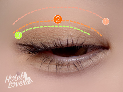 ❶をまぶた全体にのせて、❷を重ねて