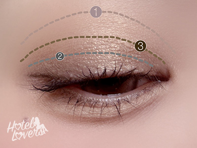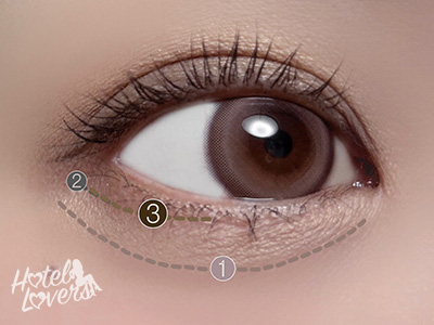 目尻三角ゾーンに❷をひくようにのせ次に❸を