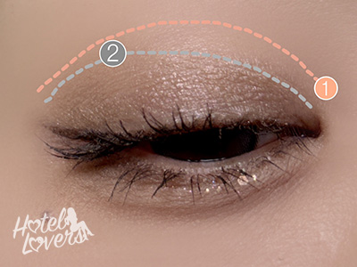 目尻広めに❷を重ねて境目を馴染ませます。