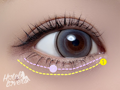 下まぶたにも❶を全体にのせて、