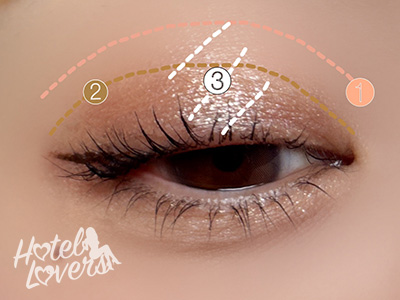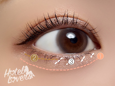 ❷を目尻に重ねたら、目頭から黒目下まで❸を