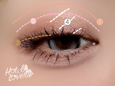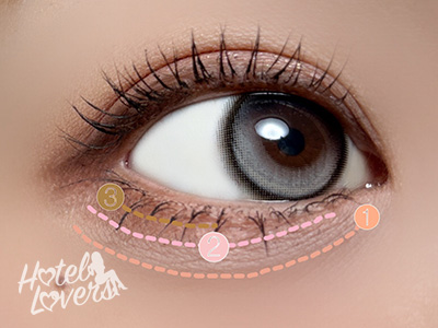 ❸を目尻にいれて、❷をキワに重ねてぼかしたら完成です。