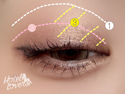 ❶を全体にのせて、❷を二重幅にのせて馴染ませたら