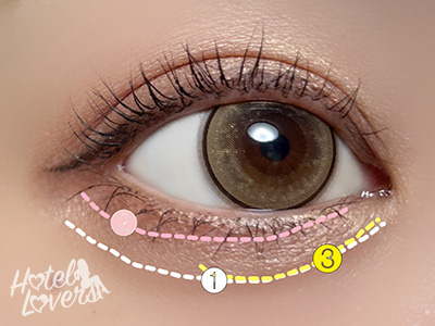 目頭から中央まで❸を重ねます。