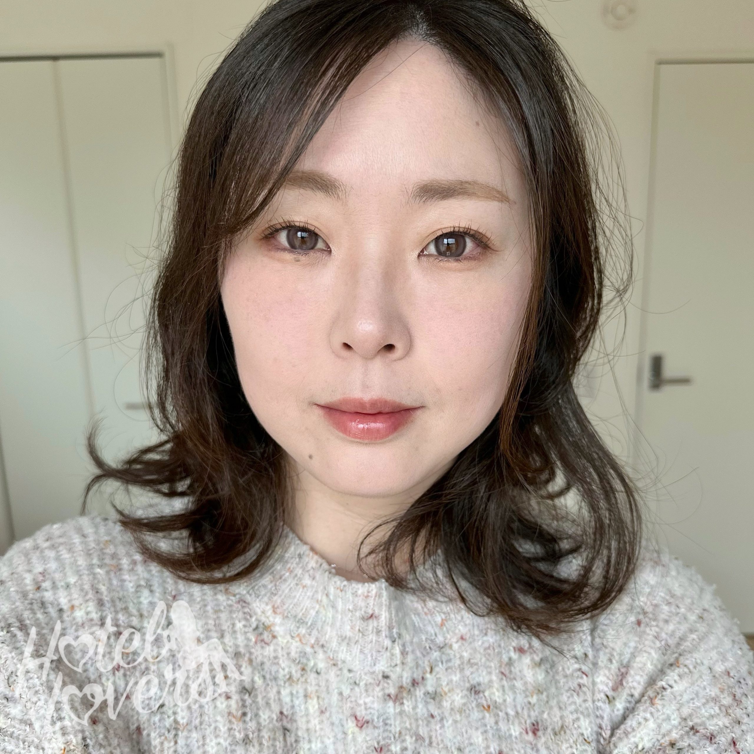 程よい透明感と色素薄い系な発色のカラコンのおかげで、ベーシックなメイクも艶感のある仕上がりになります♡