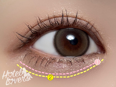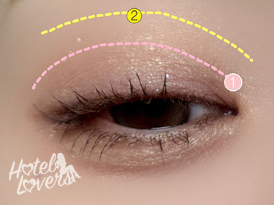 二重幅まで❶をのせたら、境目をぼかしながら